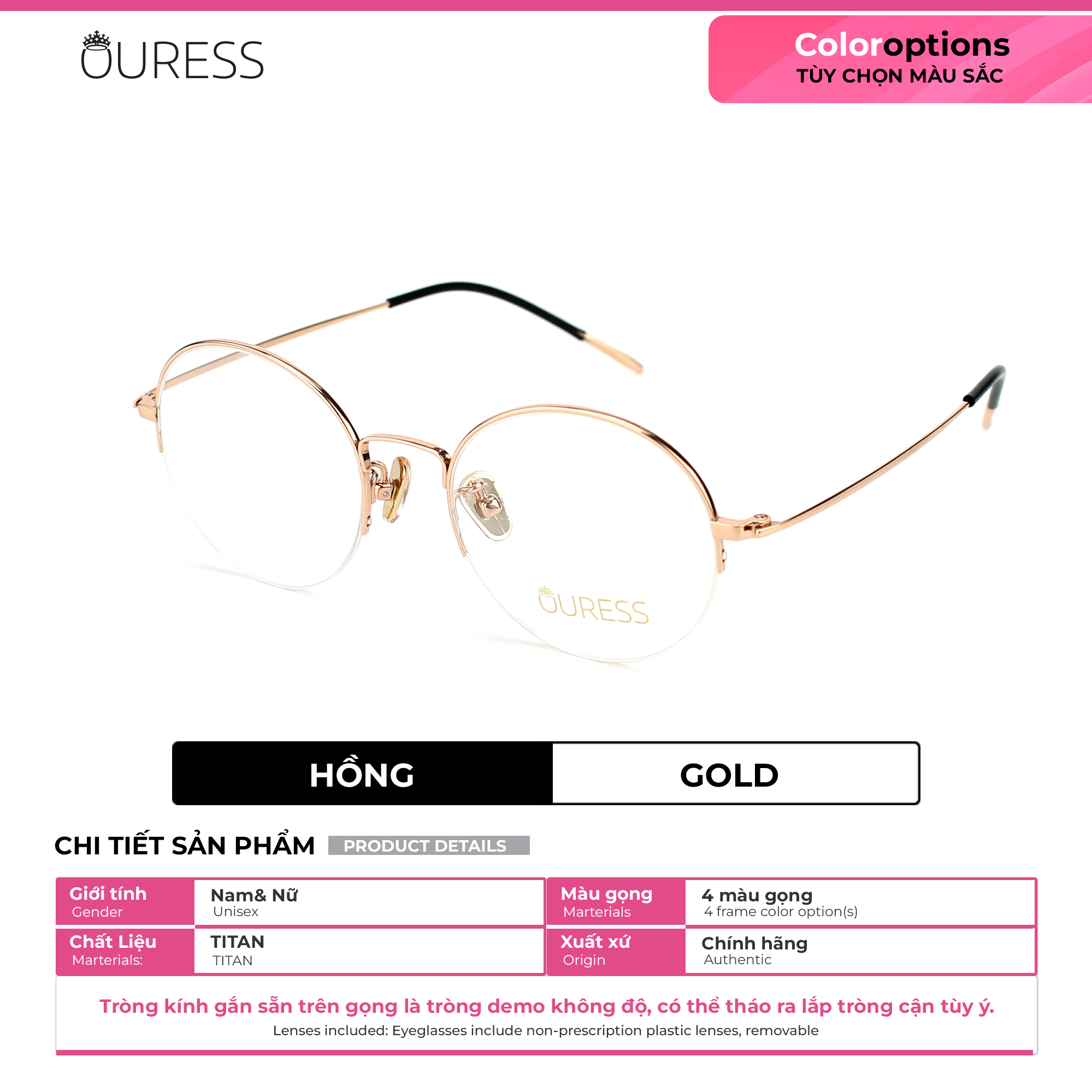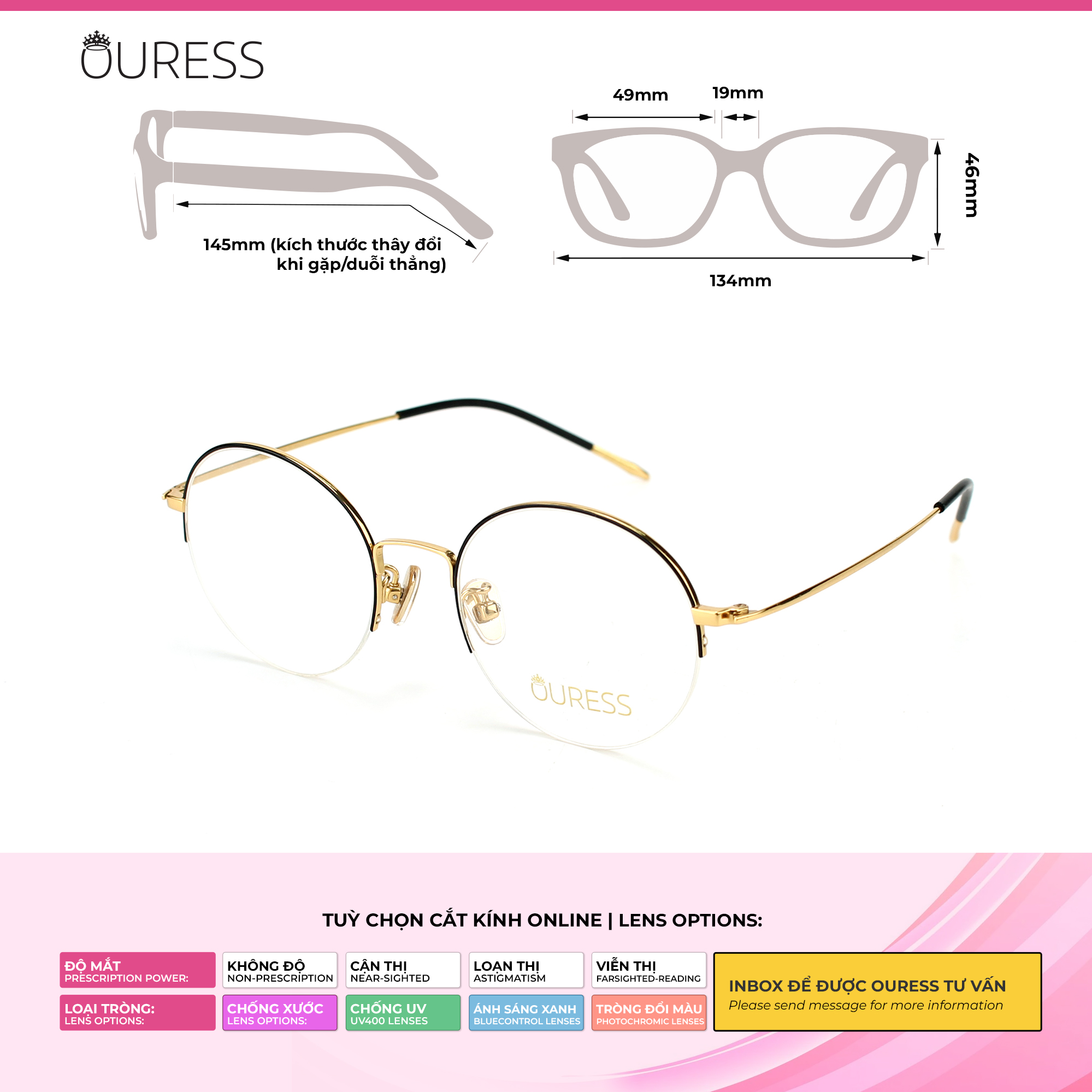 + Cung cấp PD (khoảng cách đồng tử) hoặc hình chụp cận cảnh gương mặt qua Tin nhắn cho Ouress