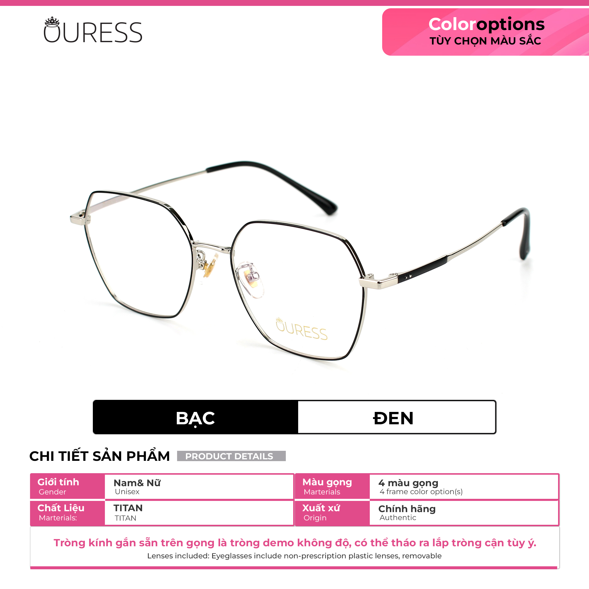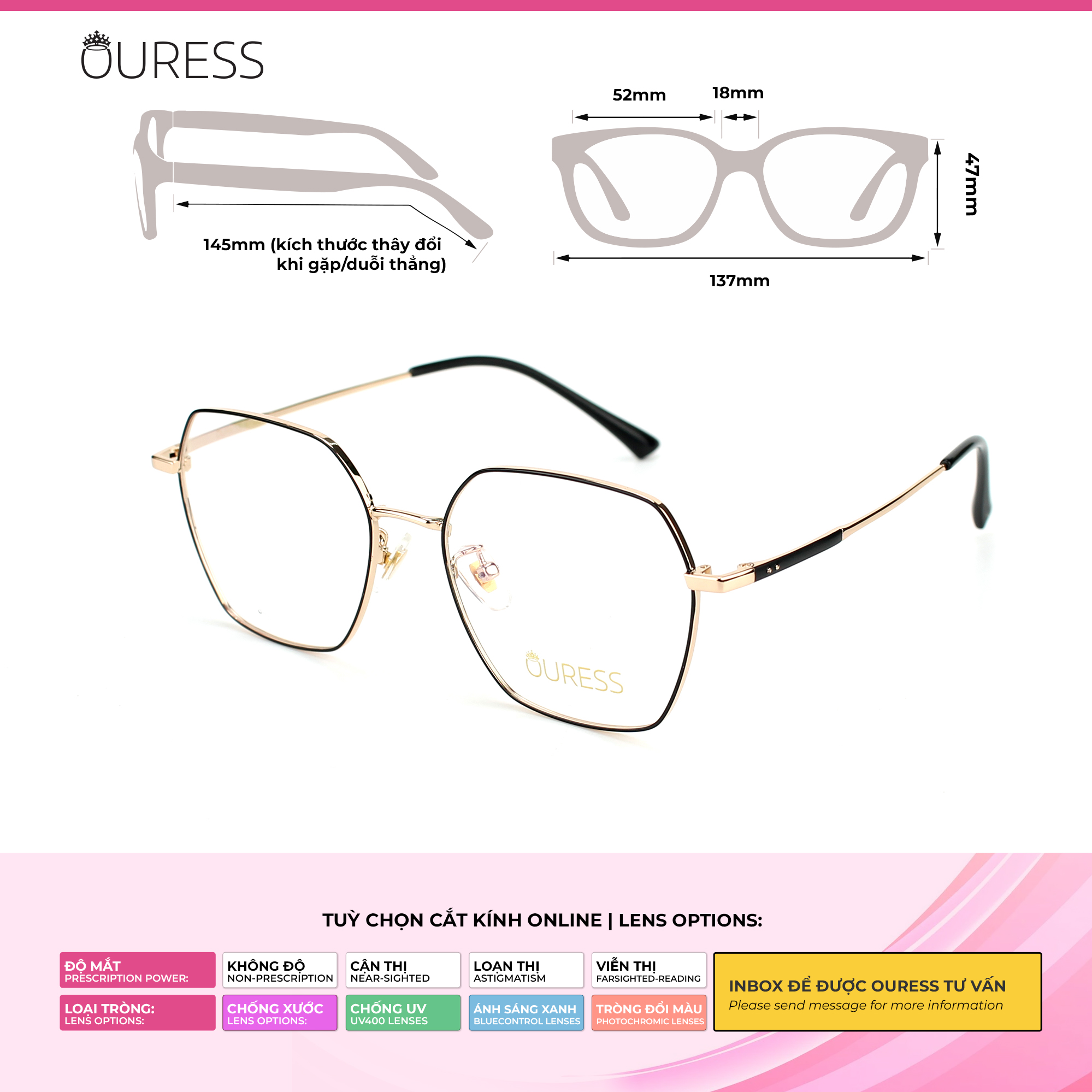 + Cung cấp PD (khoảng cách đồng tử) hoặc hình chụp cận cảnh gương mặt qua Tin nhắn cho Ouress
