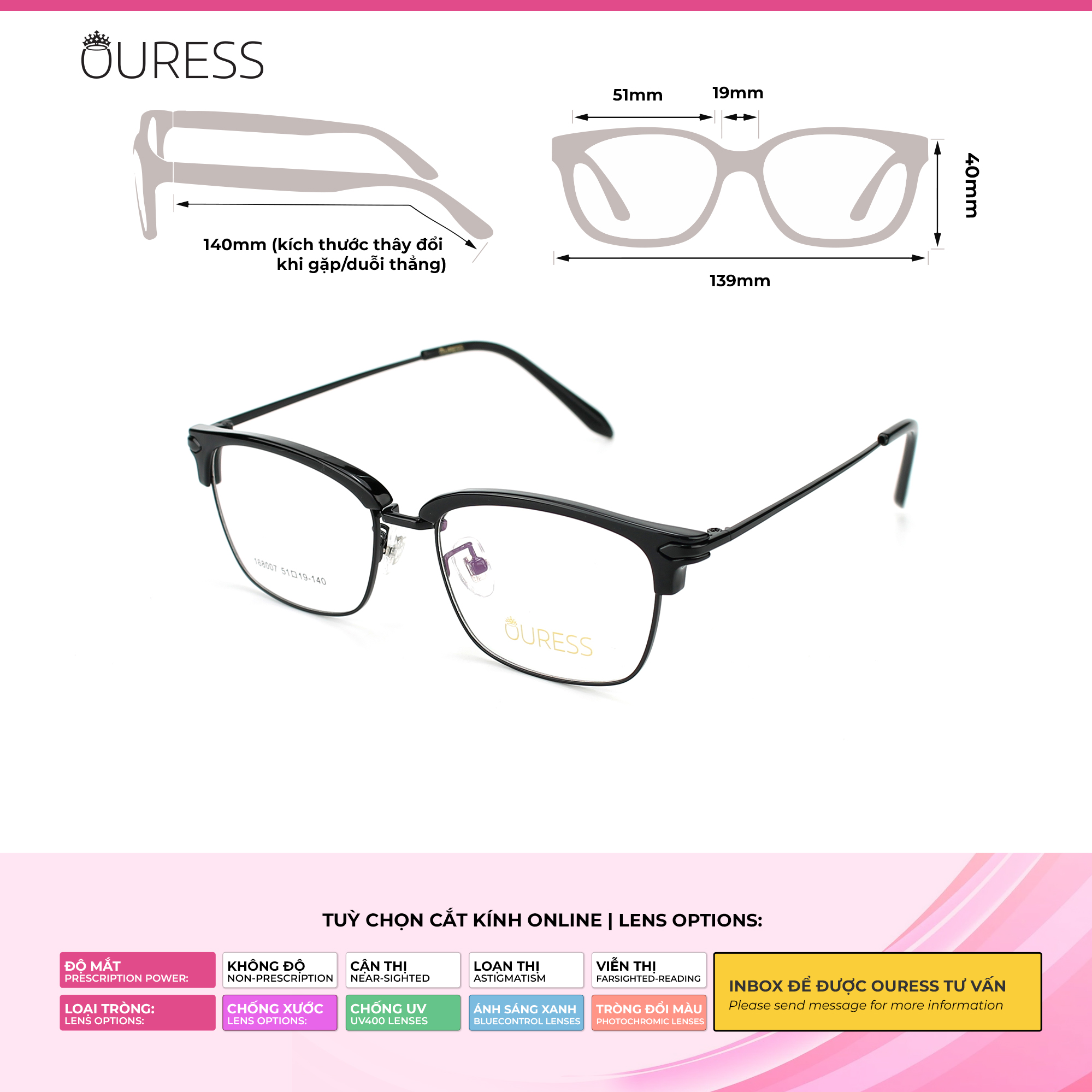 + Cung cấp PD (khoảng cách đồng tử) hoặc hình chụp cận cảnh gương mặt qua Tin nhắn cho Ouress