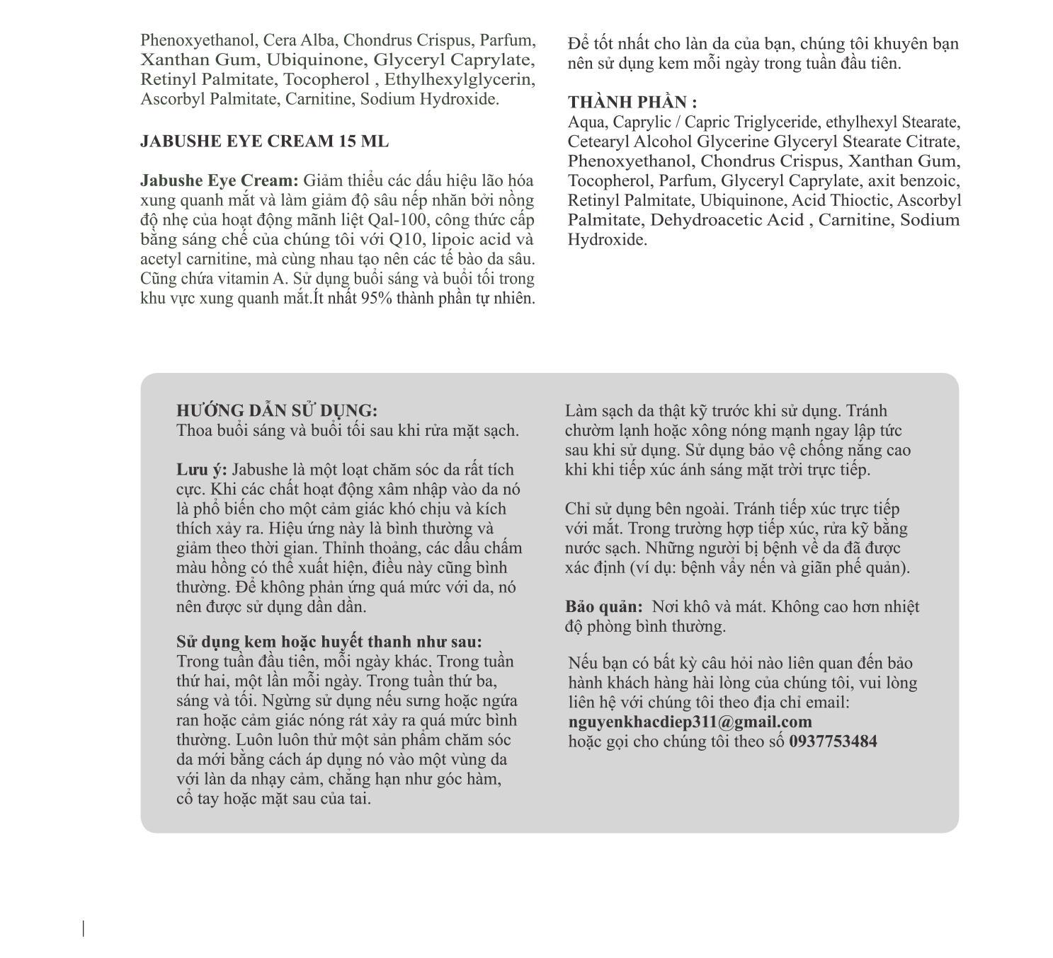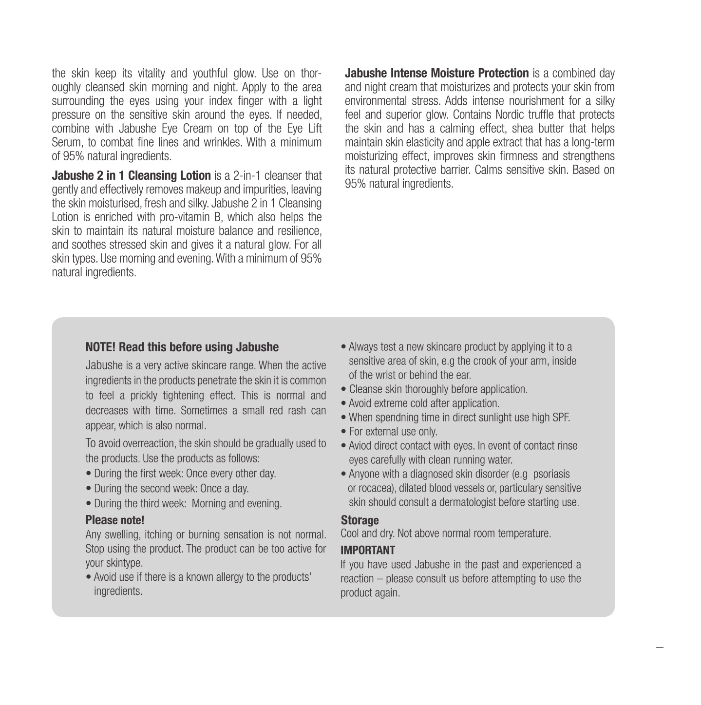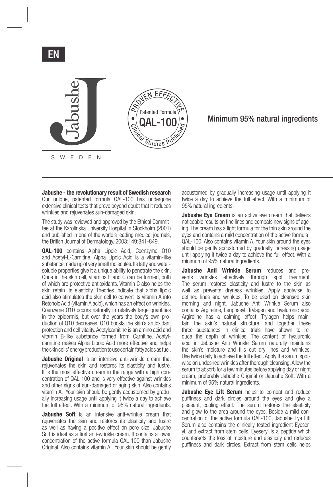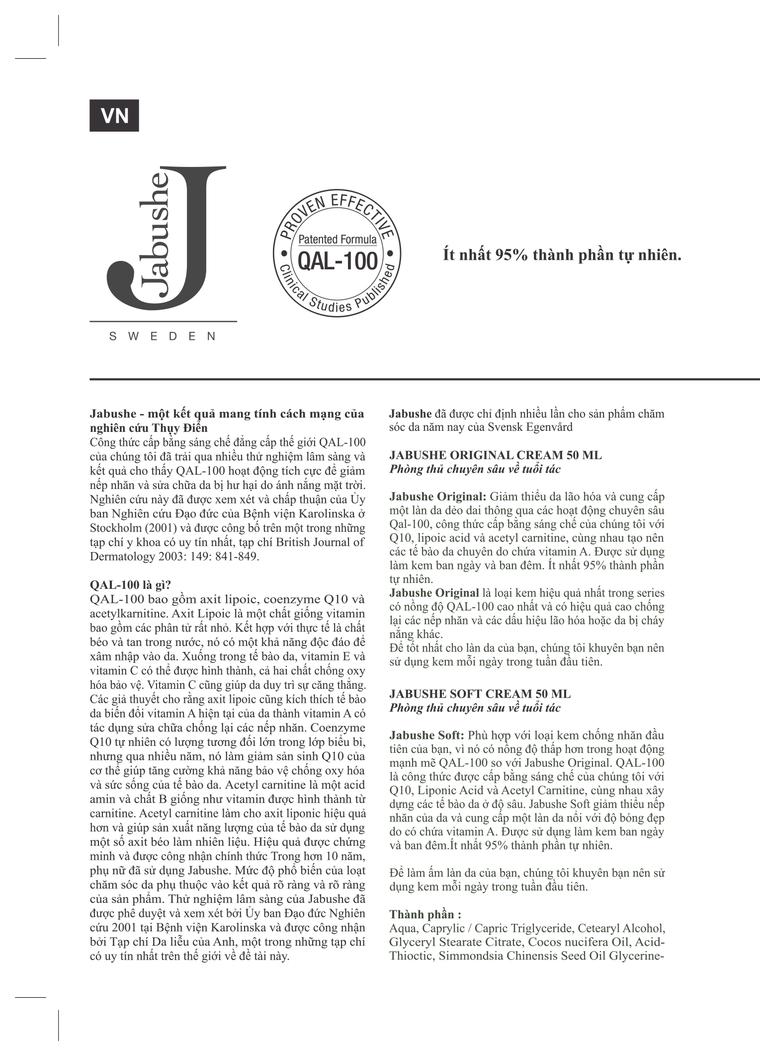 Jabushe ít nhất 95 % thành phần tự nhiên