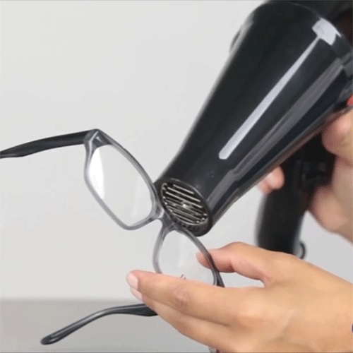 Cách 4: Bạn làm nóng phần gọng trong vòng 1-2 phút bằng chiếc máy sấy. Sau đó nhẹ nhàng vặn gọng kính cho đến khi thấy vừa khuôn mặt. Thao tác này cần thực hiện tỉ mỉ, khéo léo một chút để kính không bị gãy nhé.